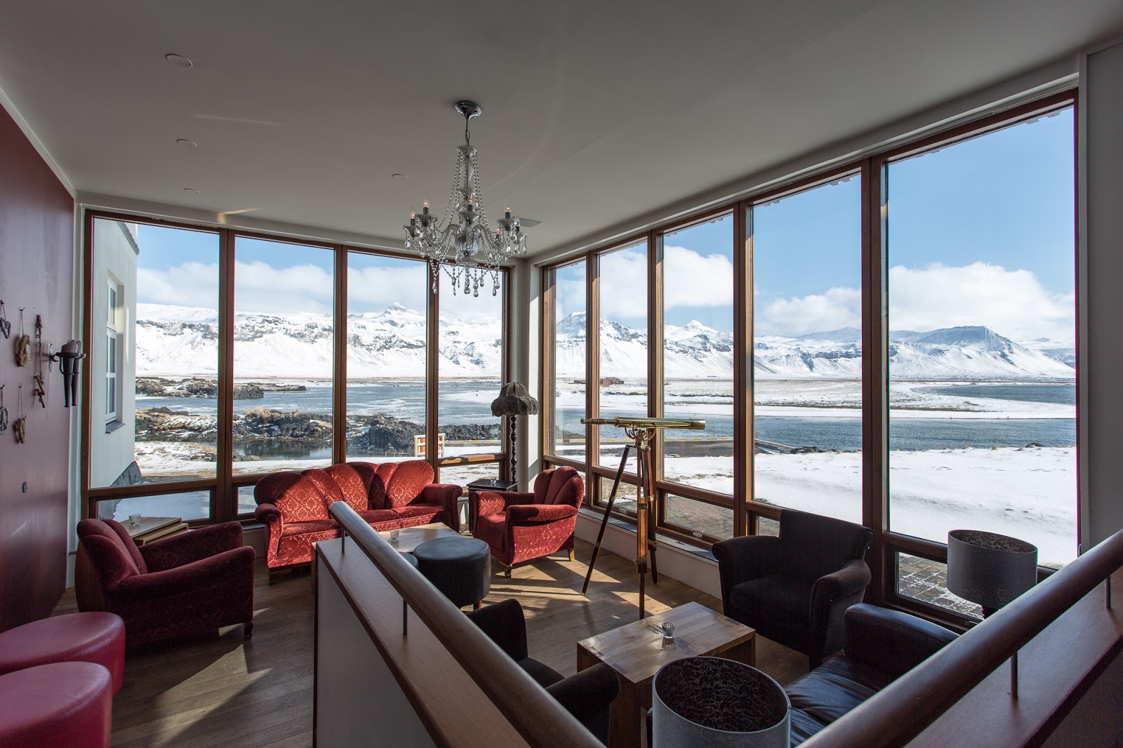 The hotel (pronounced boothir) is set on the Snaefellsnes peninsula, which is a two-hour drive from Reykjavik. To say it's set in amazing scenery is an understatement; extinct volcanoes, herds of gorgeous Icelandic ponies and the odd house or church popping up in the landscape - everything looks so tiny against the vast mountain backdrop, it is truly breathtaking.